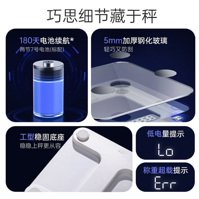 组合销售 产品介绍 产品规格 售后服务 产品咨询 发现好货 奥克斯/AUX 体重秤体脂称 3001W1M 充电款 2000 里程 小米体重秤2 家用健康秤电子秤 高精度智能分析隐藏式LED屏幕 4400 里程 小米 智能体重秤S200 米家家用健康秤电子秤 高精度 人物双模式 APP数据测量 智能分析 3900 里程 小米 家用健康秤电子秤高精度 人物双模式 APP数据测量智能体重秤S200白色 3900 里程 小熊/Bear 厨房秤高精度0.05g充电款 家用电子秤 厨房克秤 迷你食物称DZCD01K5绿色 3500 里程