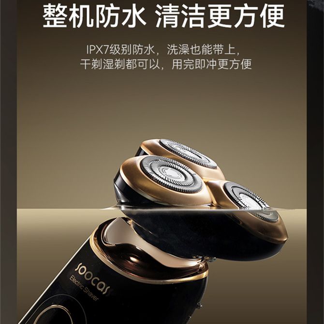 素士(SOOCAS) 洁面剃须刀 三刀头全身水洗男士便携电动刮胡刀刮胡子剃胡须刀S32(标准版)黑金