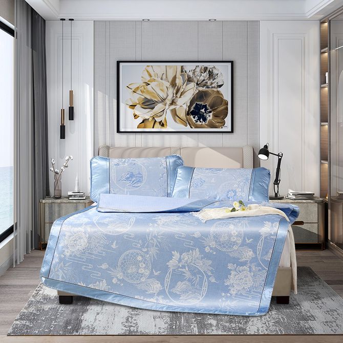 富安娜/Fuanna 冰丝提花席\忆江南\蓝\180*200cm 产品规格:席片 180*200cm 枕套74*48cm*2 兑换价格 10900 里程 会员卡别 终身白金卡 白金卡 金卡 银卡 普通卡 儿童卡 服务 由 礼赢盛世 发货并提供售后 凉席尺寸: 180*200CM 颜色: 蓝色 购买数量: 件 库存件 配送地址: 立即购买 加入购物车 成功添加到购物车 关闭 购物车共有 种商品 总金额为: 组合销售 产品介绍 产品规格 售后服务 产品咨询 发现好货 九洲鹿家纺 凉席密藤席-伊甸悠香三件套 JZLLX-JTX088 5200-5700 里程 悠梦嘉居 凉感冰丝软席三件套 花韵依然 230*250cm YX-13110 6000 里程 圣夫妮 金玉翠花清肤竹席三件套 180*200cm SFN-150 4900 里程 圣夫妮 金玉翠花清肤竹席三件套 150*200cm SFN-149 4400 里程 多喜爱Dohia 悦怡冰丝凉席系列 叶舞谜裳 夏季凉席双人床枕席冰丝席 7900-8700 里程
