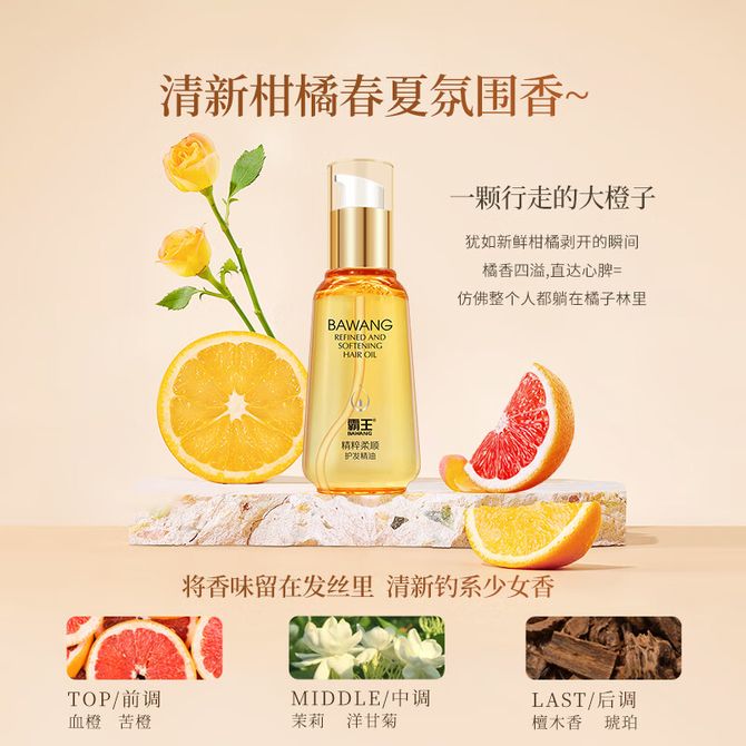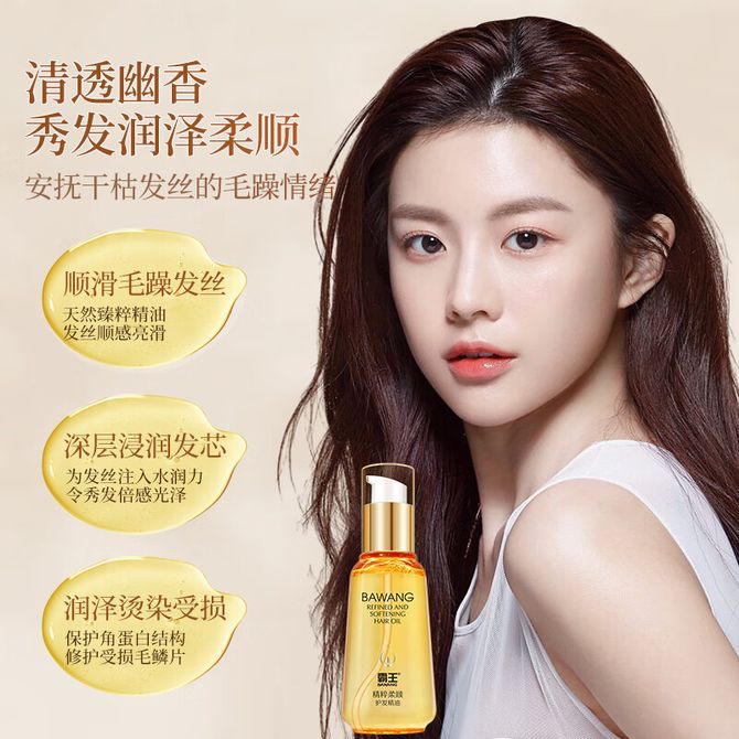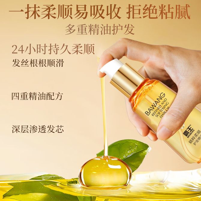 霸王/Bawang 护发精油女防毛躁柔顺顺滑修复干枯卷发头发精华发油保湿补水 95ml精粹柔顺护发精油