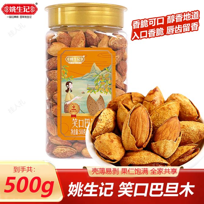 姚生记 笑口巴旦木500g 坚果干果零食罐装送礼