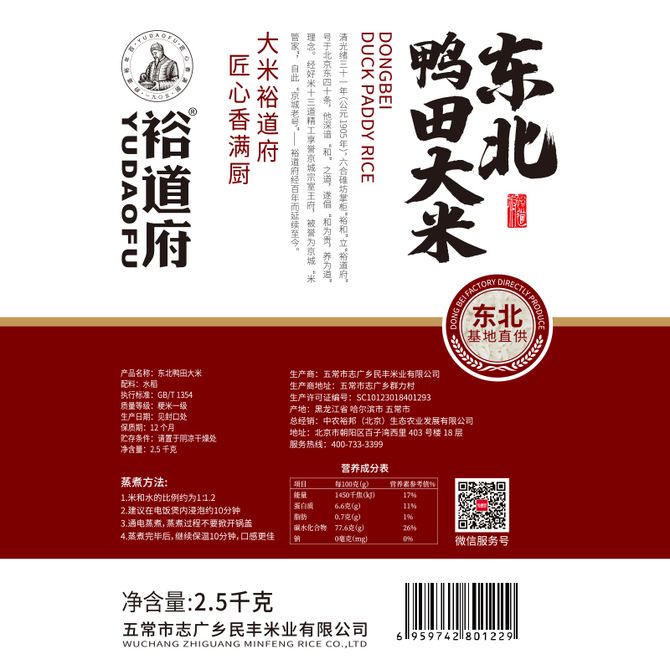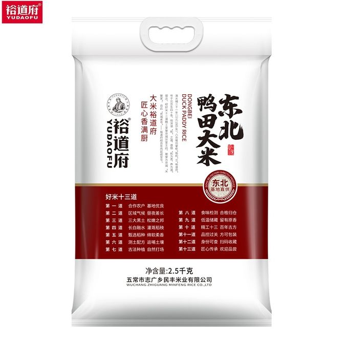 裕道府 东北鸭田大米 2.5KG 东北核心产区大米 煮饭煮粥味道香家庭装 5斤 (东北鸭田大米 2.5KG)东北黄金产区,肥沃黑土孕育,松花江水灌溉;古法种植,人工插秧,物理防虫,人工收割;好米十三道,稻谷鲜磨,真空锁鲜,低温储存;简单蒸煮,满厨飘香,美味安心 兑换价格 1700 里程 会员卡别 终身白金卡 白金卡 金卡 银卡 普通卡 儿童卡 服务 由 铭钰食品专营 发货并提供售后 规格: 袋装 购买数量: 件 库存件 配送地址: 立即购买 加入购物车 成功添加到购物车 关闭 购物车共有 种商品 总金额为: 组合销售 产品介绍 产品规格 售后服务 产品咨询 发现好货 金熊 泰国茉莉 香米 1kg 泰国原料进口 1300 里程 十月稻田当季新米辽河长粒香大米 5kg 东北大米 香米 粳米 十斤 2100 里程 源头说 五常有机稻花香新米 东北大米 2.5kg(双重防伪认证) 4200 里程 十月稻田 长粒香大米2.5kg 东北大米5斤 东北香米 1300 里程 稻可道雪地黑土东北珍珠大米5kg 1600 里程