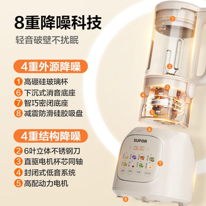 苏泊尔/Supor 降噪破壁机家用豆浆机大容量自清洁辅食机榨汁机早餐机料理机 降噪破壁机,榨汁机早餐机料理机 兑换价格 15700 里程 会员卡别 终身白金卡 白金卡 金卡 银卡 普通卡 儿童卡 服务 由 北京致诚博雅贸易有限公司 发货并提供售后 颜色: 米白 购买数量: 件 库存件 配送地址: 立即购买 加入购物车 成功添加到购物车 关闭 购物车共有 种商品 总金额为: 组合销售 产品介绍 产品规格 售后服务 产品咨询 发现好货 卡屋KAWU 绞肉机2.3L家用电动碎肉机PY-37930一副刀片 3300 里程 小熊/Bear 绞肉机家用绞馅机碎肉机电动多功能料理搅拌打肉饺子肉馅蒜蓉机切碎机QSJ-D03W5 4000 里程 小熊/Bear 绞肉机家用QSJ-E03K6 绞馅机 碎肉机 电动多功能料理蒜蓉机 3400 里程 苏泊尔(SUPOR) 绞肉机家用多功能电动碎肉机料理机 辅食肉馅机 蔬菜机 大容量 1.75L JR20-B175 3000 里程 卡屋kawu 蒜蓉器多功能电动无线蒜泥机 1700 里程