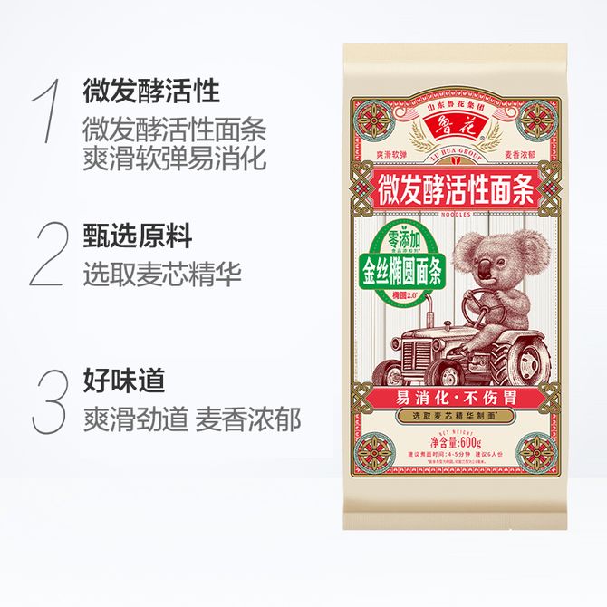 鲁花 椭圆面条(考拉系列)600g*2袋纯真麦香