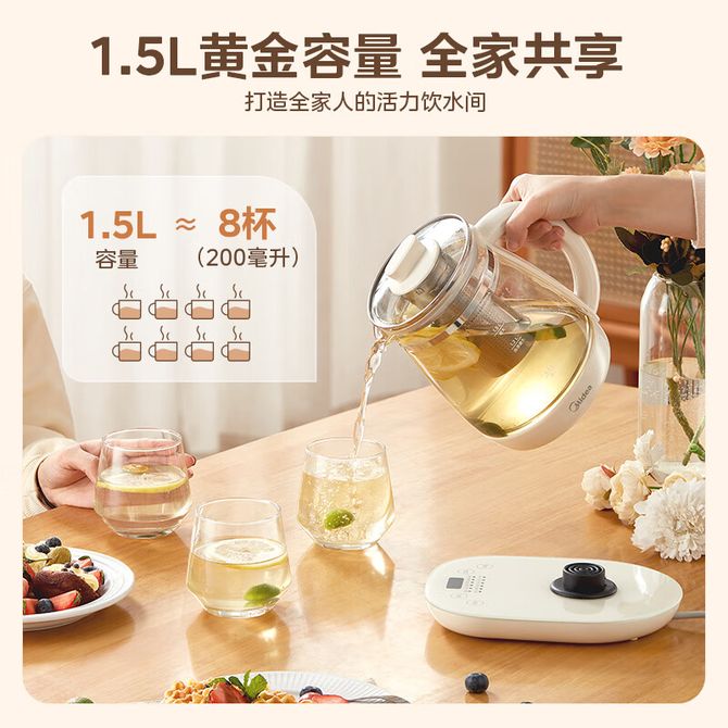 组合销售 产品介绍 产品规格 售后服务 产品咨询 发现好货 九阳/Joyoung 养生壶1.5L茶具电茶壶煮茶壶花茶壶玻璃煮茶器煎药壶中药锅药膳电水壶烧水壶 3900 里程 九阳/Joyoung 养生壶迷你玻璃花茶壶煮茶器 12大功能11档温度 电水壶热水壶烧水壶 1.5L DGD1506BQ 3900 里程 美的/Midea 养生壶 1.5L家用多功能小型全自动办公室烧水壶加厚玻璃煮茶热水壶 MK-YS15P201 4200 里程 美的/Midea 养生壶 1.5L家用养生壶全自动玻璃烧水壶24h预约烧水壶12小时防干烧保护智能恒温 MK-YS15P202 3700 里程 美的/Midea 养生壶 1.5L全自动电热水壶 24h预约12小时智能恒温 14大功能11档控温 花茶壶煮茶器MK-Y12Q 3500 里程