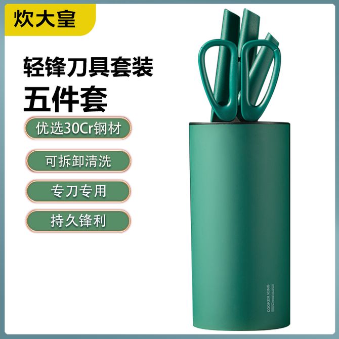 炊大皇(COOKER KING) 轻锋刀具套装五件套 切片刀切菜刀祖母绿 QF31WU