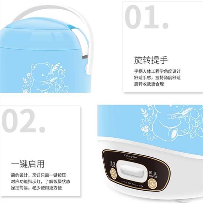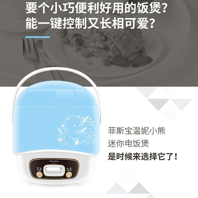 finsybo 1.2L电饭煲电饭锅 多功能煮饭煮粥煲汤炖煮锅厨房电器电锅电热锅F-IRC12(温妮)浅蓝色 1.2L容量;手柄人体工程学角度设计,舒适手感;大面积加热盘,内胆重力感应加热;迷你圆润可爱造型设计,容量精巧,一键操控;内带不锈钢蒸格;可爱蜜罐小熊图案设计 兑换价格 5300 里程 会员卡别 终身白金卡 白金卡 金卡 银卡 普通卡 儿童卡 服务 由 万象盛世电器专营店 发货并提供售后 颜色: 浅蓝色 购买数量: 件 库存件 配送地址: 立即购买 加入购物车 成功添加到购物车 关闭 购物车共有 种商品 总金额为: