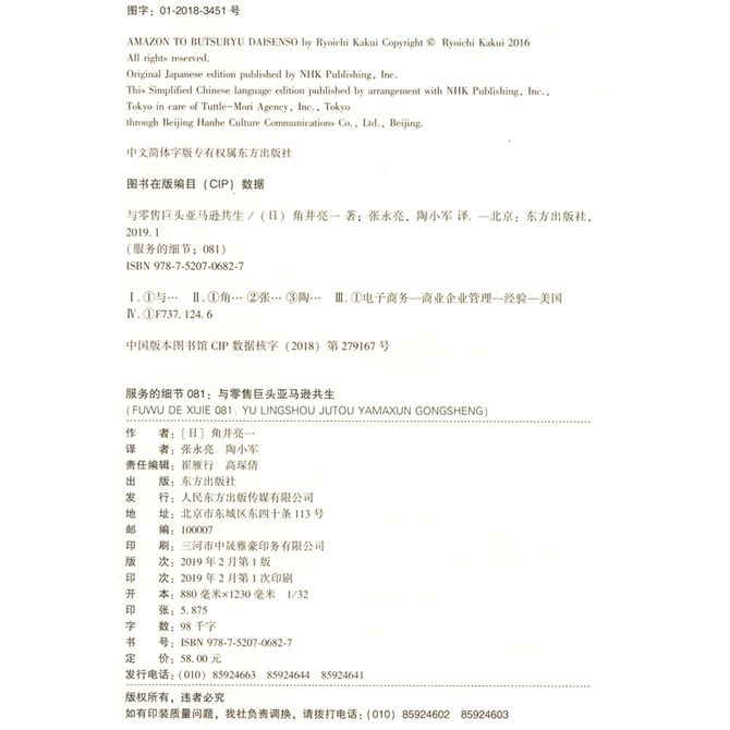 图书 [日]角井亮一《服务的细节081:与零售巨头亚马逊共生》东方出版社图书 在物流决定经营成败的大背景下如何存活? 解读日美企业电子商务战术 兑换价格 1700 里程 会员卡别 终身白金卡 白金卡 金卡 银卡 普通卡 儿童卡 服务 由 北京卓点信息技术有限公司 发货并提供售后 书品规格: 本 购买数量: 件 库存件 配送地址: 立即购买 加入购物车 成功添加到购物车 关闭 购物车共有 种商品 总金额为: