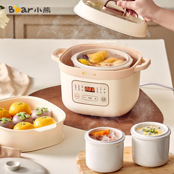 小熊/Bear 炖汤盅电炖锅 隔电炖锅 煲汤电炖锅 婴儿煮粥锅熬粥燕窝带蒸笼 单人隔水炖 1.6L一盅三胆 (1.6L+0.5L*2)一盅三胆 文火隔水炖 温润白瓷 热水快炖 蒸炖可同时 五大菜单 兑换价格 7000 里程 会员卡别 终身白金卡 白金卡 金卡 银卡 普通卡 儿童卡 服务 由 北京致诚博雅贸易有限公司 发货并提供售后 颜色: 其他 购买数量: 件 库存件 配送地址: 立即购买 加入购物车 成功添加到购物车 关闭 购物车共有 种商品 总金额为: 组合销售 产品介绍 产品规格 售后服务 产品咨询 发现好货 小熊/Bear 电炖锅1-2人小炖锅煮粥锅智能预约定时煲汤锅炖汤锅燕窝炖盅 4400 里程 苏泊尔(SUPOR) 电火锅家用不粘煎涮炖煮多功能4L大容量一体式大火力电煮锅不粘煎涮炖煮多功能料理锅 H40YK757 5700 里程 西屋/Westinghouse 多功能电煮锅电炖锅1.6L一锅多能WFB16A 11600 里程 苏泊尔(SUPOR) 电火锅 宿舍小电锅学生寝室一体泡面小火锅 多功能锅涮肉涮菜 1.7L 【 单锅】H17YK489 3000 里程 小熊(Bear)电炖锅电炖盅煮粥神器煲汤锅炖汤锅婴儿煮粥锅熬粥燕窝炖盅DDG-E15K2 4800 里程