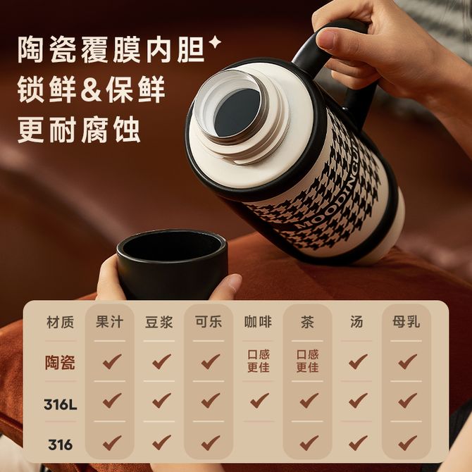 物生物 星盏陶瓷保温杯 格纹故事 950ML陶瓷内胆 大容量户外保温杯JV012429-0950-EQ 该款为格纹故事款,详情共用;一杯三饮,便携把手,陶瓷覆膜内胆,长效保温,950ml大容量 兑换价格 5200 里程 会员卡别 终身白金卡 白金卡 金卡 银卡 普通卡 儿童卡 服务 由 广西桂雅文化传媒有限公司 发货并提供售后 颜色: 其他 购买数量: 件 库存件 配送地址: 立即购买 加入购物车 成功添加到购物车 关闭 购物车共有 种商品 总金额为: 组合销售 产品介绍 产品规格 售后服务 产品咨询 发现好货 爱奇屋aichiw思悦保温杯AI-D97 1500 里程 希乐(cille) 领先保温杯XB-22172女生316水杯儿童上学专用大容量杯子冬季男款学生水壶500ml 2400 里程 爱奇屋 保温杯随行口袋杯 高颜值清新小巧水杯子280ml AI-D158 1100 里程 德铂Debo保温杯304不锈钢内胆双层茶杯白色DEP-719 1400 里程 爱奇屋aichiw靓彩保温杯350ml AI-D96 1400 里程