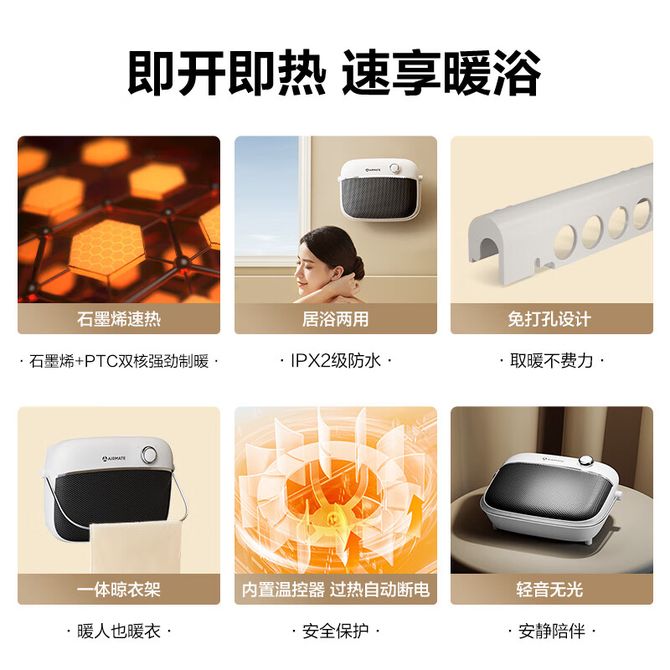 艾美特/Airmate 石墨烯暖风机 HP20-K40 家用免打孔壁挂式电暖气桌面台地恒温节能 速热防水热风机 居浴两用 高能效PTC发热体 即开即热 兑换价格 7800 里程 会员卡别 终身白金卡 白金卡 金卡 银卡 普通卡 儿童卡 服务 由 居多电器专营店 发货并提供售后 颜色: 白色 购买数量: 件 库存件 配送地址: 立即购买 加入购物车 成功添加到购物车 关闭 购物车共有 种商品 总金额为: