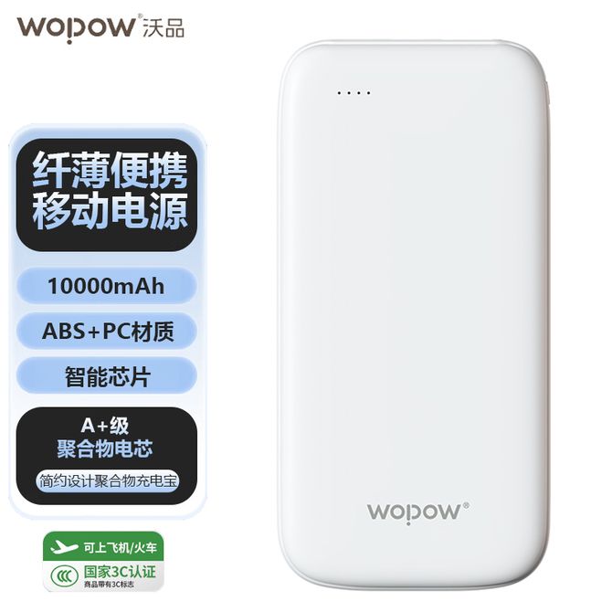 沃品/WOPOW 大容量充电宝10000毫安时移动电源超薄小巧 3C认证 可上飞机 机身有3C标识 兑换价格 2600 里程 会员卡别 终身白金卡 白金卡 金卡 银卡 普通卡 儿童卡 服务 由 贝洛美智能科技精品馆 发货并提供售后 电池容量: 8001mAh-10000mAh 颜色: 白色 购买数量: 件 库存件 配送地址: 立即购买 加入购物车 成功添加到购物车 关闭 购物车共有 种商品 总金额为: 组合销售 产品介绍 产品规格 售后服务 产品咨询 发现好货 ZNNCO 充电宝20000毫安时超薄小巧迷你自带线大容量快充移动电源便携苹果华为小米2万mAh手机 4200 里程 睿量/Remax 磁吸无线充电宝 Magsafe快充 5000mAh超薄小巧便携移动电源 手机背夹迷你移动电源 适用于苹果华为小米手机 RPP-107 4600 里程 雷摄 T68S【3C认证可上飞机】充电宝10000毫安 移动电源 22.5W快充丨1万毫安丨多口输出 1700 里程 纽曼(Newmine) 自带四线充电宝 3C认证 LED智能数显10000毫安移动电源 AL03 经典黑 3000 里程 雷摄 【3C认证】LS-YDZJ01 10000毫安 四线多功能移动电源 黑色 2000 里程