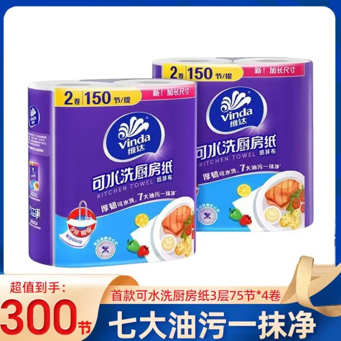 维达 厨房用纸 可水洗卷纸75节4卷3层加厚随心撕3倍吸油纸厨房纸 下单规格:2提=4卷(新旧包装随机发货)如有购买售后咨询需求,可致电客服15620417009 兑换价格 1100 里程 会员卡别 终身白金卡 白金卡 金卡 银卡 普通卡 儿童卡 服务 由 岸嘉生活馆 发货并提供售后 包装数量: 2提 购买数量: 件 库存件 配送地址: 立即购买 加入购物车 成功添加到购物车 关闭 购物车共有 种商品 总金额为: