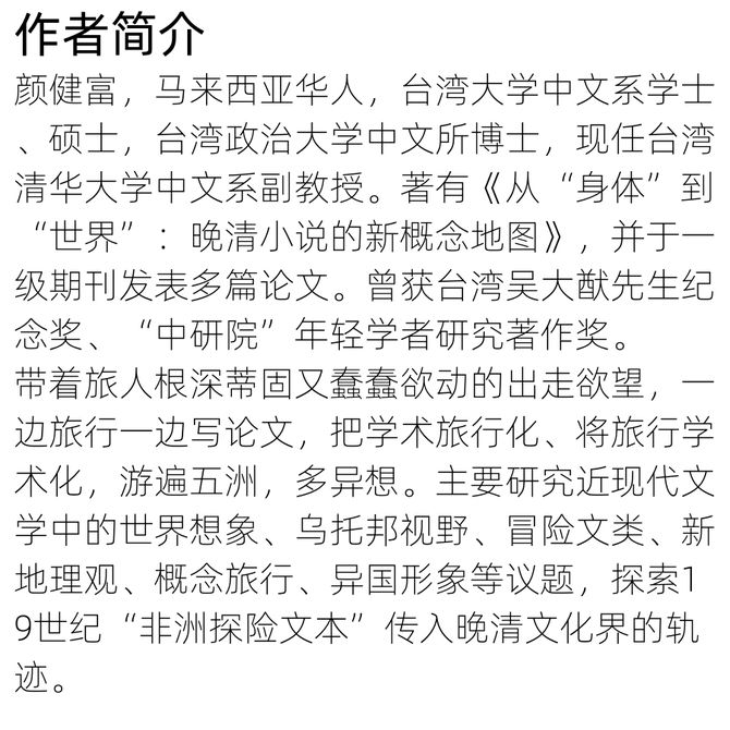 图书 [马来西亚]颜健富《穿梭黑暗大洲:晚清文人对于非洲探险文本的译介与想象》九州出版社