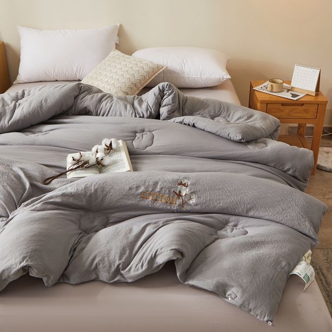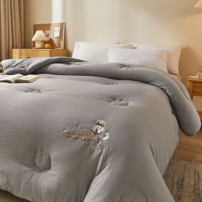 雅鹿 被子100%新疆纯棉花带皱手工水洗棉被-贵族灰-220*240cm/8斤