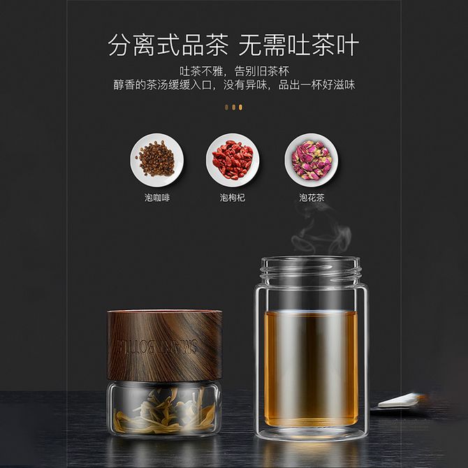 绿珠(lvzhu) 办公便携功夫水杯子 双层玻璃杯 男女士茶水分离泡茶杯 b730木纹色带杯套 【 配置:泡茶杯*1+杯套*1】200ml容量,304不锈钢茶隔,茶水分离,双层隔热杯身 兑换价格 3000 里程 会员卡别 终身白金卡 白金卡 金卡 银卡 普通卡 儿童卡 服务 由 众生缘(江苏)互联网科技有限公司 发货并提供售后 颜色: 其他 购买数量: 件 库存件 配送地址: 立即购买 加入购物车 成功添加到购物车 关闭 购物车共有 种商品 总金额为: 组合销售 产品介绍 产品规格 售后服务 产品咨询 发现好货 乐扣乐扣(LOCK&LOCK)塑料水杯男士女士茶杯户外运动杯子便携随手杯学生茶瓶防漏创意水瓶HLC644系列 1500 里程 绿珠lvzhu 双层玻璃杯 创意便携商务大容量 茶水分离过滤办公泡茶水杯子200ml 带杯套 B730木纹 2700 里程 德铂(Debo)特尔斯茶水分离双层玻璃杯 旅行茶杯办公水杯 DEP-746 4800 里程 如艺 格拉斯水晶杯家用泡茶杯喝水杯(颜色随机) 1100 里程 德铂Debo 520ML阿德莱水杯便携式咖啡杯高颜值耐热玻璃杯dep-ds342磨砂款 2300 里程