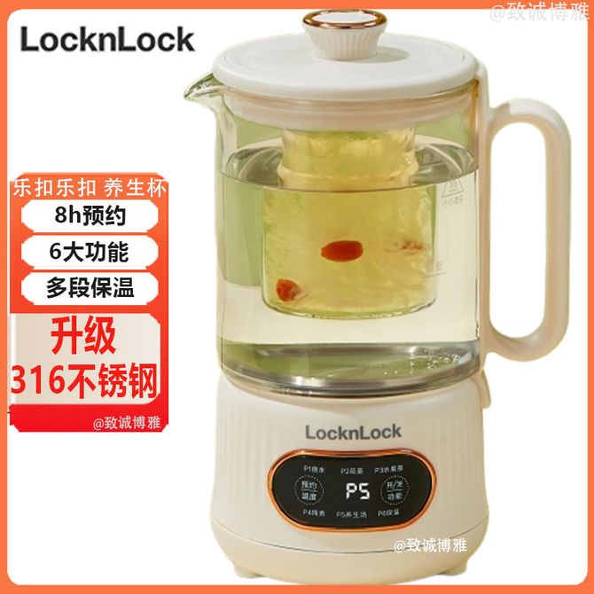 乐扣乐扣 养生壶煮茶壶煮茶器恒温壶家用玻璃花茶壶烧水壶 茶漏+炖盅 0.75L (详情共用,此款为茶漏+炖盅款)升级316不锈钢 8h预约 6大功能 多段保温 兑换价格 7000 里程 会员卡别 终身白金卡 白金卡 金卡 银卡 普通卡 儿童卡 服务 由 北京致诚博雅贸易有限公司 发货并提供售后 颜色: 其他 购买数量: 件 库存件 配送地址: 立即购买 加入购物车 成功添加到购物车 关闭 购物车共有 种商品 总金额为: 组合销售 产品介绍 产品规格 售后服务 产品咨询 发现好货 九阳/Joyoung 养生壶1.5L茶具电茶壶煮茶壶花茶壶玻璃煮茶器煎药壶中药锅药膳电水壶烧水壶 3900 里程 九阳/Joyoung 养生壶迷你玻璃花茶壶煮茶器 12大功能11档温度 电水壶热水壶烧水壶 1.5L DGD1506BQ 3900 里程 美的/Midea 养生壶 1.5L家用多功能小型全自动办公室烧水壶加厚玻璃煮茶热水壶 MK-YS15P201 4200 里程 美的/Midea 养生壶 1.5L家用养生壶全自动玻璃烧水壶24h预约烧水壶12小时防干烧保护智能恒温 MK-YS15P202 3700 里程 美的/Midea 养生壶 1.5L全自动电热水壶 24h预约12小时智能恒温 14大功能11档控温 花茶壶煮茶器MK-Y12Q 3500 里程