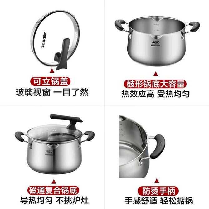 爱仕达/ASD 加厚不锈钢汤锅20cm 家用厨房复底汤锅小炖锅热奶锅 电磁炉燃气灶通用 TS20L1Q (此为20cm汤锅 详情共用) 磁通复合底,防滴漏流嘴,滤水防溢盖,大容量锅身,304不锈钢。 兑换价格 5700 里程 会员卡别 终身白金卡 白金卡 金卡 银卡 普通卡 儿童卡 服务 由 广西桂雅文化传媒有限公司 发货并提供售后 颜色: 其他 购买数量: 件 库存件 配送地址: 立即购买 加入购物车 成功添加到购物车 关闭 购物车共有 种商品 总金额为: