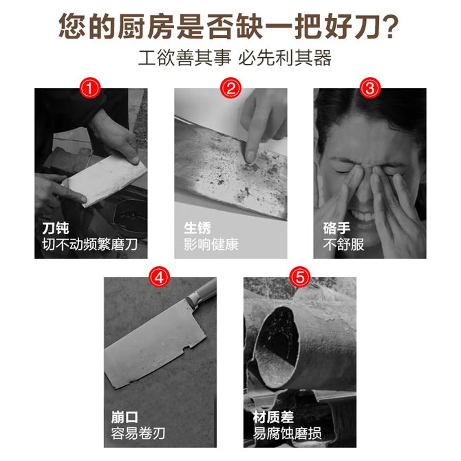 该款为切片刀,详情图共用;高碳铬钢材;15°黄金开刃;花梨木手柄