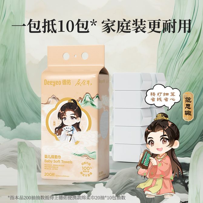 德佑/Deeyeo 悬挂珍珠纹绵柔巾200抽*2提【庆余年第二季联名】