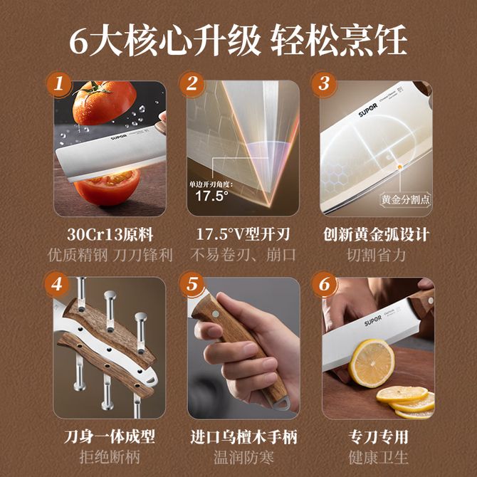 苏泊尔(SUPOR) 菜刀 砍骨刀切菜刀厨房厨师不锈钢砺系列165mm KEB165AH10 该款为单把砍骨刀,详情图共用;30Cr13原料;V型开刃;乌檀木手柄 兑换价格 3000 里程 会员卡别 终身白金卡 白金卡 金卡 银卡 普通卡 儿童卡 服务 由 林峥厨具专营店 发货并提供售后 颜色: 其他 购买数量: 件 库存件 配送地址: 立即购买 加入购物车 成功添加到购物车 关闭 购物车共有 种商品 总金额为:
