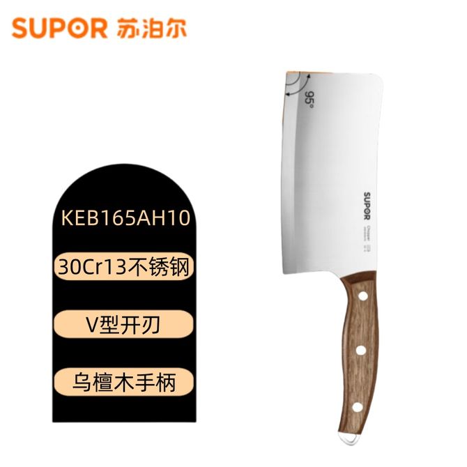 苏泊尔(SUPOR) 菜刀 砍骨刀切菜刀厨房厨师不锈钢砺系列165mm KEB165AH10 该款为单把砍骨刀,详情图共用;30Cr13原料;V型开刃;乌檀木手柄 兑换价格 3000 里程 会员卡别 终身白金卡 白金卡 金卡 银卡 普通卡 儿童卡 服务 由 林峥厨具专营店 发货并提供售后 颜色: 其他 购买数量: 件 库存件 配送地址: 立即购买 加入购物车 成功添加到购物车 关闭 购物车共有 种商品 总金额为: 组合销售 产品介绍 产品规格 售后服务 产品咨询 发现好货 拜格(Bayco) 锤纹菜刀家用切片刀厨师刀 BD2957 1100 里程 张小泉 家用菜刀炫系列切片刀切肉单刀菜刀D-51032100 1700 里程 张小泉 家用女士专用菜刀切片刀免磨不锈钢厨房刀具PD-170 2200 里程 拜格(Bayco) 不锈钢菜刀三件套刀具套装菜刀斩骨刀水果刀组合 BD3453 1700 里程 张小泉黑金刚刀具二件套 D40170100 3500 里程