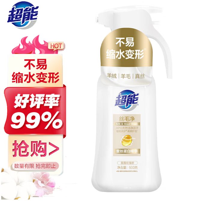 超能 丝毛净600g真丝毛呢洗涤剂 高端洗衣液 专业呵护轻薄娇贵真丝衣物 专为洗护羊绒、羊毛、真丝等高档衣物而生 兑换价格 1300 里程 会员卡别 终身白金卡 白金卡 金卡 银卡 普通卡 儿童卡 服务 由 京狮文化生活馆 发货并提供售后 净含量: 其他容量 清洁剂容量: 其他容量 购买数量: 件 库存件 配送地址: 立即购买 加入购物车 成功添加到购物车 关闭 购物车共有 种商品 总金额为: 组合销售 产品介绍 产品规格 售后服务 产品咨询 发现好货 蓝月亮 深层洁净洗衣液4斤 1kgx1瓶+500gx2补充装 薰衣草香 强效去渍 1500 里程 威露士/Walch La有氧洗洗衣液套装 4斤松木清香(瓶1L+袋500ml*2) 除菌除螨 1900 里程 威露士 洗衣液除菌机洗手洗家用除螨去污1L*1瓶 1500 里程 蓝月亮 亮白增艳洗衣液2斤 1kg*1瓶 1100 里程 蓝月亮 护理洗衣液去污去渍 保护衣物纤维和原色 薰衣草香 1kg*2瓶 持久留香 速溶易漂 温和配方 1500 里程