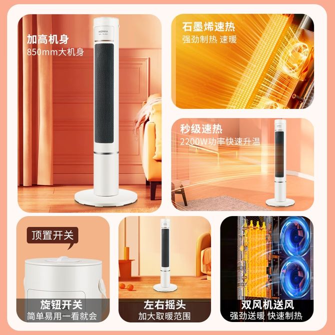 康佳/Konka 取暖器家用石墨烯暖风机立式电暖气电暖风热风机速热暖风扇机械款 石墨烯速热,加高机身,秒级速热,旋钮开关,左右摇头,双风机送风 兑换价格 6300 里程 会员卡别 终身白金卡 白金卡 金卡 银卡 普通卡 儿童卡 服务 由 广西桂福礼供应链管理有限公司 发货并提供售后 颜色: 白色 购买数量: 件 库存件 配送地址: 立即购买 加入购物车 成功添加到购物车 关闭 购物车共有 种商品 总金额为: