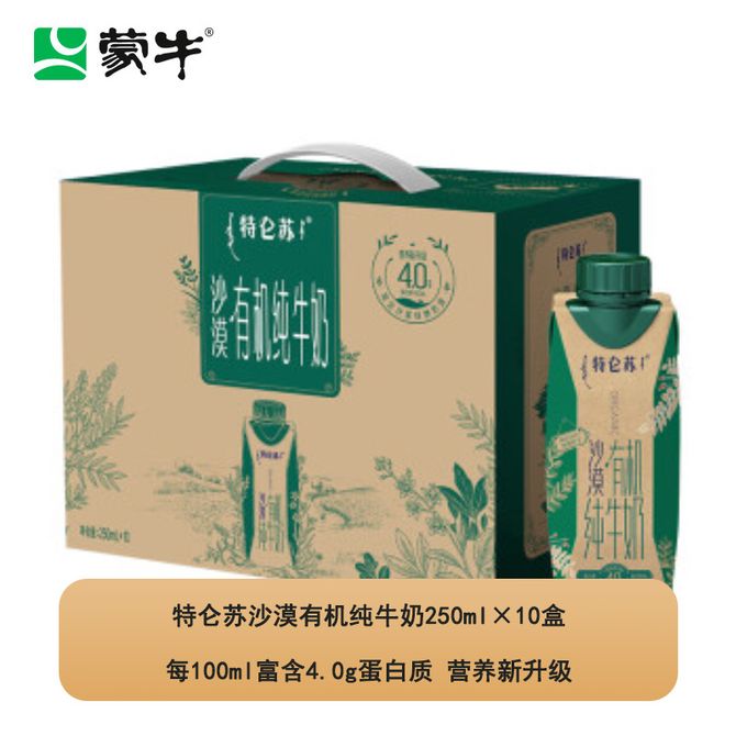 蒙牛 特仑苏沙漠有机纯牛奶全脂灭菌乳利乐梦幻盖250ml×10包(每100ml含有4.0g蛋白质)营养早餐牛奶