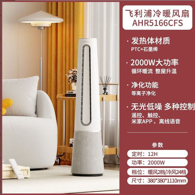 飞利浦/Philips 冷暖两用电风扇 无叶风扇塔扇家用落地立式智能遥控取暖器暖风机电暖器AHR5166CFS 【石墨烯加热、两档制热、等离子净化、触控 + 遥控 +WiFi 语音 + 离线语音控制】 兑换价格 82600 里程 会员卡别 终身白金卡 白金卡 金卡 银卡 普通卡 儿童卡 服务 由 瑶晨生活专营店 发货并提供售后 颜色: 白色 购买数量: 件 库存件 配送地址: 立即购买 加入购物车 成功添加到购物车 关闭 购物车共有 种商品 总金额为: