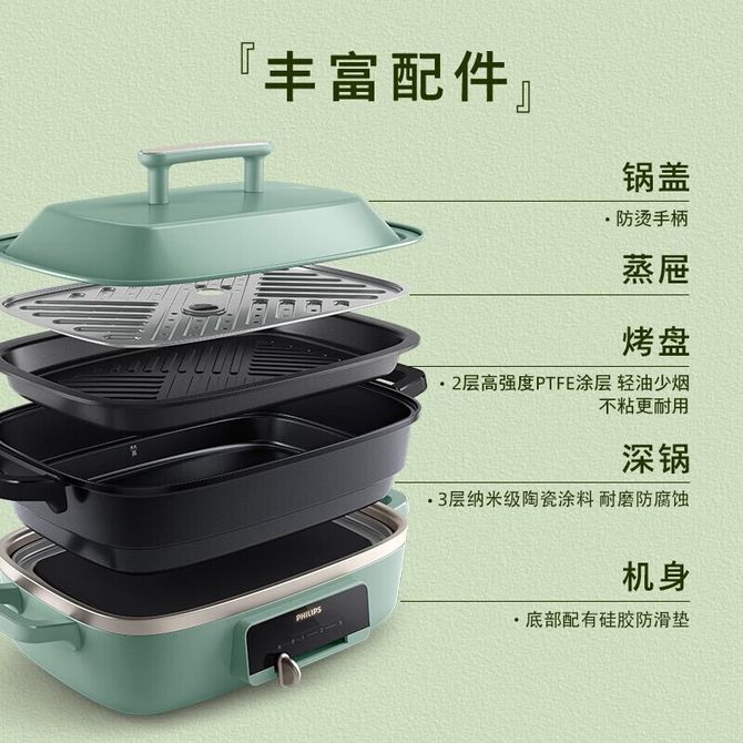 飞利浦/Philips 多用途锅 多功能电火锅 烤肉锅HD2250/20 2.5L 料理锅 安心涂层轻油少烟 多档控温 1400W大功率家用多功能锅网红款 【一锅多用一锅乐享】 多用途锅 多功能电火锅 烤肉锅料理锅 安心涂层轻油少烟 多档控温 1400W大功率 兑换价格 34800 里程 会员卡别 终身白金卡 白金卡 金卡 银卡 普通卡 儿童卡 服务 由 纳华优选 发货并提供售后 颜色: 浅绿色 购买数量: 件 库存件 配送地址: 立即购买 加入购物车 成功添加到购物车 关闭 购物车共有 种商品 总金额为: