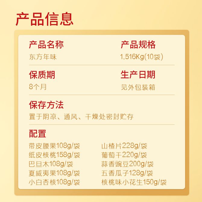 鲜记/xianjee 东方年味 1.516kg 赠至亲 赠兄长 赠好友 兑换价格 7400 里程 会员卡别 终身白金卡 白金卡 金卡 银卡 普通卡 儿童卡 服务 由 大华祥泰食品专营店 发货并提供售后 规格: 礼盒 购买数量: 件 库存件 配送地址: 立即购买 加入购物车 成功添加到购物车 关闭 购物车共有 种商品 总金额为: 组合销售 产品介绍 产品规格 售后服务 产品咨询 发现好货 西域美农 新疆薄皮核桃500g/袋 新疆特产原味 薄皮核桃 1300 里程 西域美农 烘焙腰果200g 坚果特产 休闲零食 带皮腰果仁 1600 里程 味滋源 紫皮腰果2袋装 每袋100g 1100 里程 沃隆每日坚果(A)175g盒装 1700 里程 百草味 坚果炒货夏威夷果100g*1袋 1100 里程