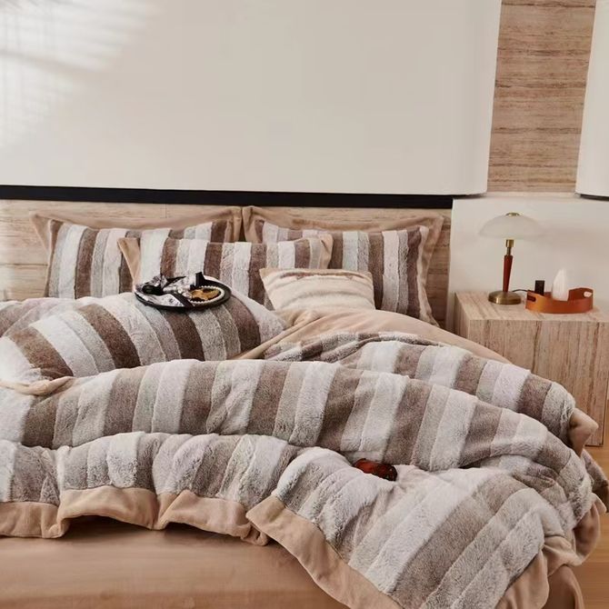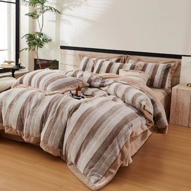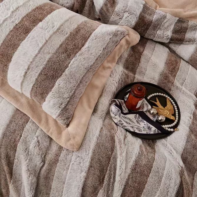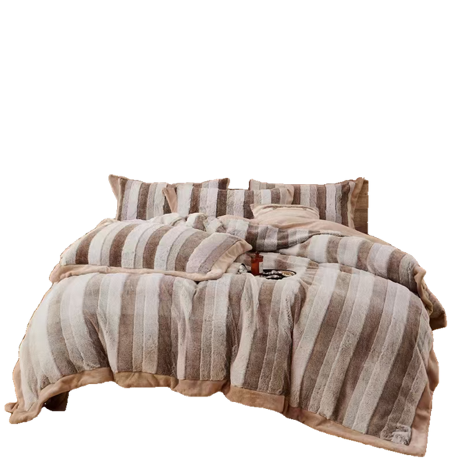 悠梦嘉居 轻奢兔毛绒四件套 奢华品质高克重兔毛绒加绒四件套200*230cm 秋冬必备1.5/1.8床通用保暖御寒 奶咖 YJ-14566