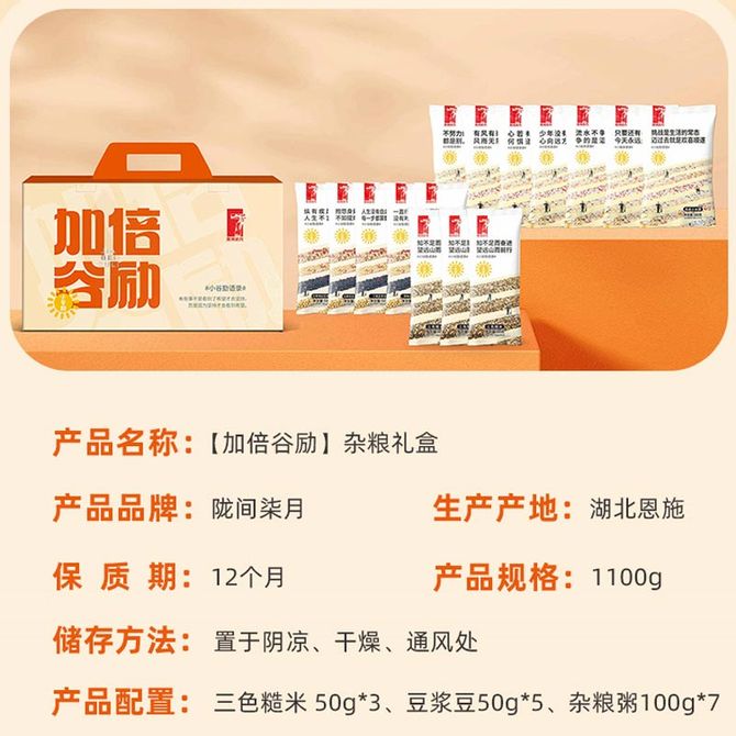 配置:加倍谷励杂粮礼盒1.1kg,加倍营养,加倍谷励