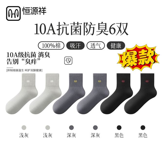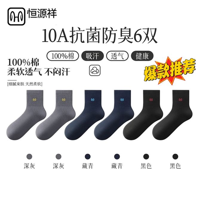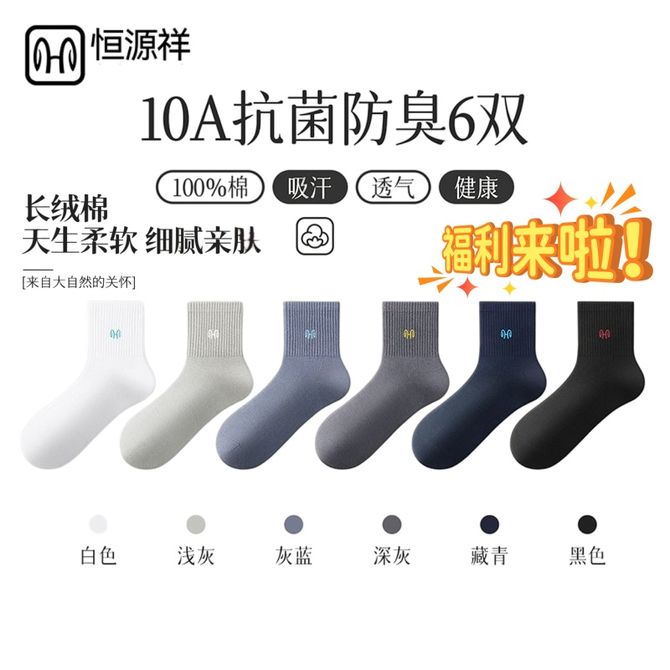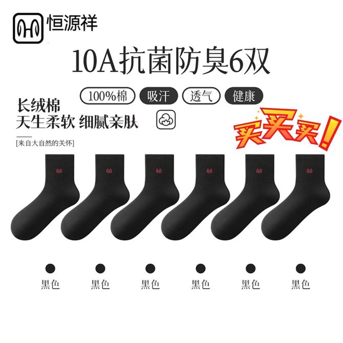 恒源祥 【6双装】男士袜子中筒运动袜秋冬季棉袜中厚款纯棉袜子【颜色随机】 吸湿透气-抗菌防臭-舒适亲肤 兑换价格 2900 里程 会员卡别 终身白金卡 白金卡 金卡 银卡 普通卡 儿童卡 服务 由 奥墩麦(河北)科技有限公司 发货并提供售后 袜子版型: 中筒 购买数量: 件 库存件 配送地址: 立即购买 加入购物车 成功添加到购物车 关闭 购物车共有 种商品 总金额为: 组合销售 产品介绍 产品规格 售后服务 产品咨询 发现好货 南极人纯棉防臭吸汗中筒男袜-黑色(5双装)N506X203010315 1500 里程 浪莎 纯棉吸汗透气男士棉袜6双装 2200 里程 恒源祥 【10双装】男士袜子夏天纯色袜子吸汗网眼防臭抗菌舒适透气百搭男袜商务休闲棉袜子【混色】 2700 里程 恒源祥 【5双装】男士商务薄款全棉抗菌防臭袜子 1900 里程 南极人 男士素色抗菌中筒袜 黑色10双装 2100 里程