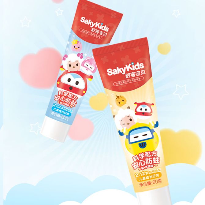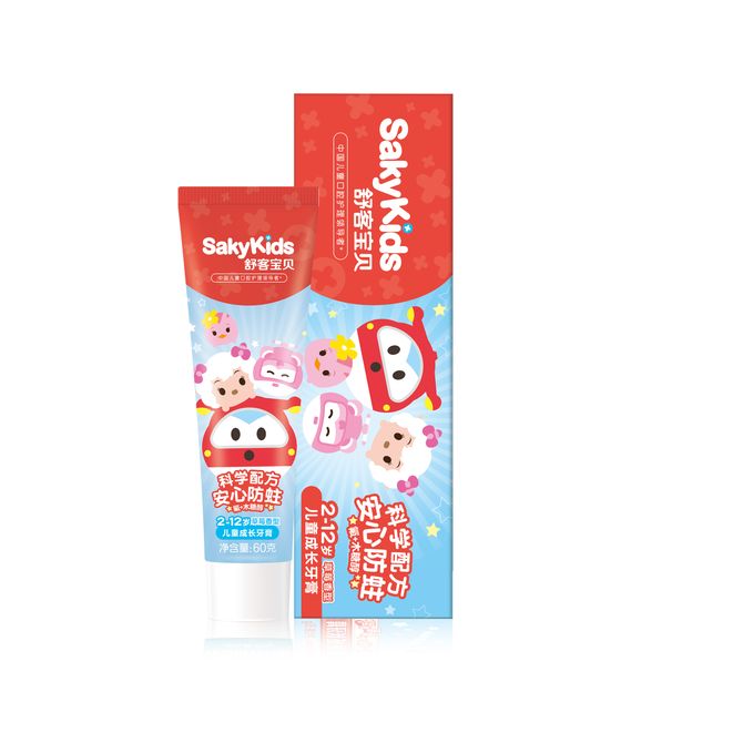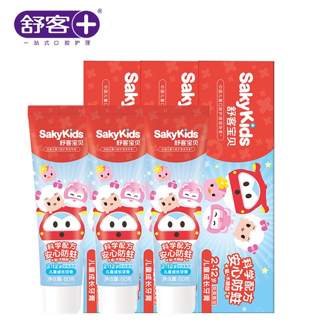 舒客宝贝(sakykids) 儿童成长牙膏(草莓味/鲜橙味)60g-奥飞*3 (口味随机)