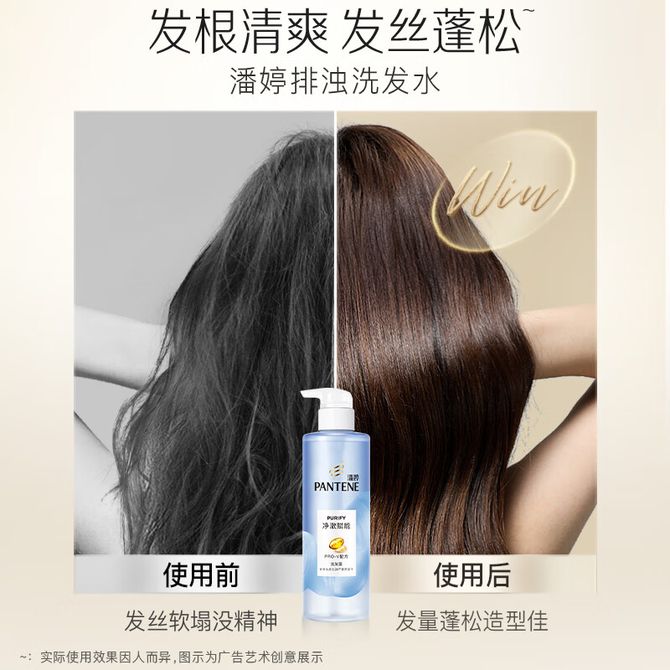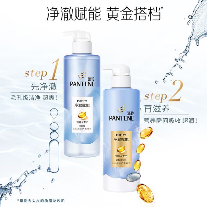 潘婷氨基酸无硅油洗发水微米净透排浊赋能530g清爽控油强韧蓬松