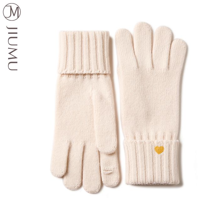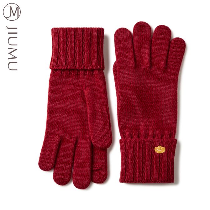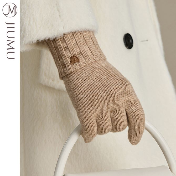 玖慕/JIUMU 纯羊毛保暖手套女秋冬季女士毛线手套冬天开车骑车防寒触屏手套ST047