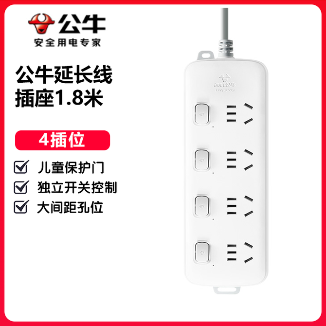 公牛(BULL) 插座电插板插排插线板独立开关多插位拖接线板1.8米 百搭外观 插拔顺畅 独立开关控制 大间距孔位 兑换价格 2600 里程 会员卡别 终身白金卡 白金卡 金卡 银卡 普通卡 儿童卡 服务 由 广西桂福礼供应链管理有限公司 发货并提供售后 插排线: 有线 插位: 4插位 购买数量: 件 库存件 配送地址: 立即购买 加入购物车 成功添加到购物车 关闭 购物车共有 种商品 总金额为: 组合销售 产品介绍 产品规格 售后服务 产品咨询 发现好货 小米 多功能 3孔3USB插口 2A快充 防儿童使用安全设计插口电源插线板 白色 3000 里程 飞利浦/Philips 新国标分控插座/插线板/插板/接线板/拖线板 分控4位1.8米SPB3140WA/93 1800 里程 飞利浦/Philips 排插 1.8米总控插座 6位5孔插排 SPB2163WA/93 1500 里程 公牛(BULL) 插座新国标高品质插线3位总控全长1.8米安全保护门插线板插排排插接线板拖线板 1200 里程 公牛(BULL) 新国标插座4位总控开关全长1.8米GN-607 1600 里程