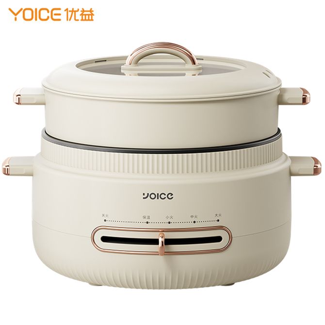 优益/Yoice 4L电火锅料理锅电蒸锅电炖锅多功能锅 煮面煮粥煲汤厨房电器炖煮锅电煮锅涮锅蒸蛋器蒸包子蒸馒头蒸饺蒸海鲜蒸玉米煎烤机涮肉锅多用途锅电热锅Y-DHG16(带蒸笼)白色