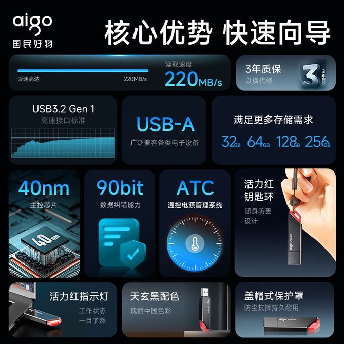 爱国者(aigo) 高速U盘U331Pro 读速220MB/s USB3.2 Gen1 U331Pro-128GB 手机平板电脑两用高速优盘 读1000MB/s大容量【线下同款】 盖帽式保护罩,小事上也很有讲究 兑换价格 3500 里程 会员卡别 终身白金卡 白金卡 金卡 银卡 普通卡 儿童卡 服务 由 成都市澳杰森贸易有限公司 发货并提供售后 存储容量: 128GB 购买数量: 件 库存件 配送地址: 立即购买 加入购物车 成功添加到购物车 关闭 购物车共有 种商品 总金额为: