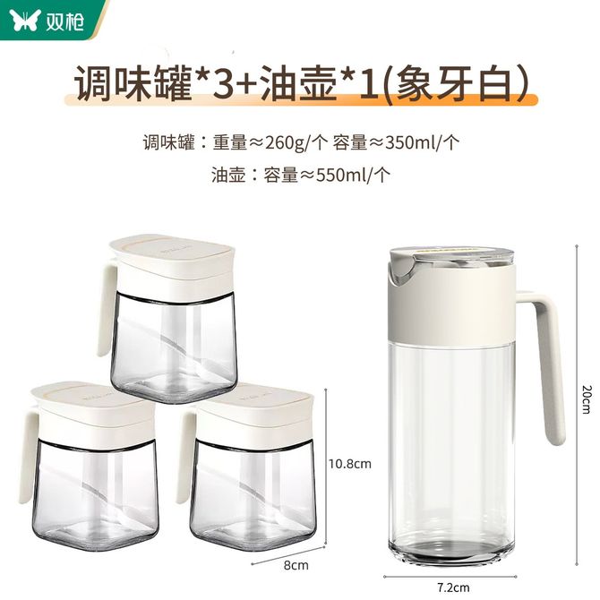 双枪(Suncha) 调料罐套装组合调料盒厨房家用盐罐调味瓶罐调料瓶收纳盒 调味罐3个+油壶550ml 加厚杯底;耐磨耐用;轻松舀取 兑换价格 2200 里程 会员卡别 终身白金卡 白金卡 金卡 银卡 普通卡 儿童卡 服务 由 海籍厨具生活专营店 发货并提供售后 颜色: 白色 购买数量: 件 库存件 配送地址: 立即购买 加入购物车 成功添加到购物车 关闭 购物车共有 种商品 总金额为: