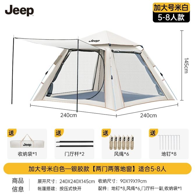 Jeep 加大款两门两落地窗自动速开帐篷 P751496 加大款240*240*145cm、银胶涂层、自动速开 兑换价格 13100 里程 会员卡别 终身白金卡 白金卡 金卡 银卡 普通卡 儿童卡 商品已下架 1. 请联系卖家咨询 2. 逛逛至恩户外运动专营店选择其他商品 组合销售 产品介绍 产品规格 售后服务 产品咨询 发现好货 北山狼/BSWolf 户外月亮椅露营折叠椅便携式野餐沙滩休闲躺椅 卡其色-成人款 2600 里程 徽羚羊 帐篷防雨布天幕户外遮阳超轻便携大凉棚野露营防雨遮阳棚 300*295CM 5000 里程 创悦(CREAJOY)便携式帐篷 2-3人室内外露营遮阳帐篷 200*150*115cm CY-5800蓝色 5300 里程 探险者(TAN XIAN ZHE) 帐篷 户外便携式折叠露营装备全自动帐篷 3-4人银胶速开帐篷 (200*145*120cm) 8500 里程 创悦(CREAJOY)全自动帐篷 2-3人野营露营免安装速开帐篷 200*150*135cm CY-5905A 绿色 8700 里程