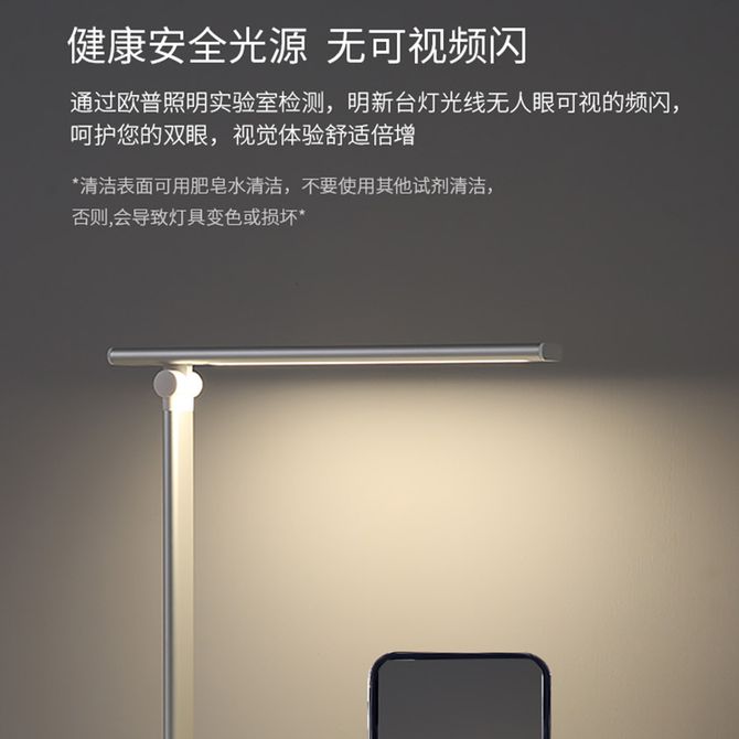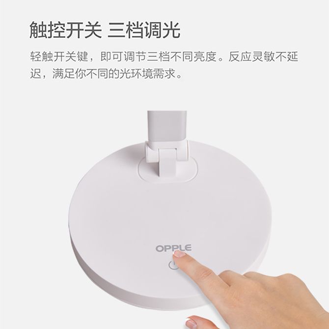 三档亮度,触摸调光,灵敏控制;高精铝散热灯头,迅速散热;健康安全光源,无频闪、无眩光、无辐射;4000K暖白光;圆形底座防滑设计,灯臂可自由转向;适用卧室、书房、儿童房等;