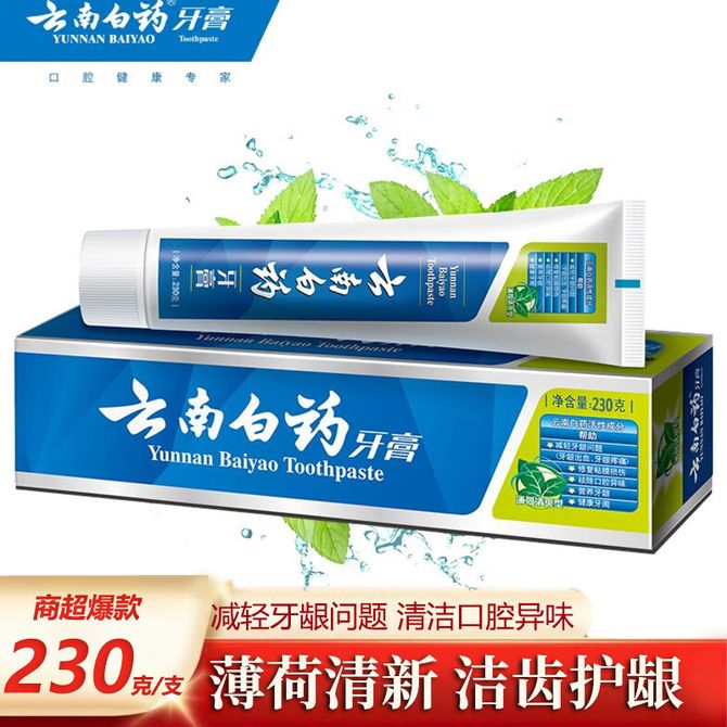 云南白药 牙膏(薄荷清爽)230g 单支装 清新口气健齿护龈 经典清爽薄荷香型牙膏 1支装