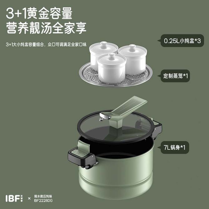 艾博菲(IBF) 烹小鲜隔水微压炖锅 不沾锅可带蒸屉炖汤火锅蒸物多功能微压锅IBF2228DG 一锅三胆 密封圈无缝贴合 快速烹饪 可蒸可炖 双耳微压 兑换价格 6500 里程 会员卡别 终身白金卡 白金卡 金卡 银卡 普通卡 儿童卡 服务 由 广西桂雅文化传媒有限公司 发货并提供售后 颜色: 其他 购买数量: 件 库存件 配送地址: 立即购买 加入购物车 成功添加到购物车 关闭 购物车共有 种商品 总金额为: 组合销售 产品介绍 产品规格 售后服务 产品咨询 发现好货 炊大皇(COOKER KING) 压力锅高压锅7重安全防爆8L适合4-8人燃气电磁炉通用 24cm 12200 里程 爱仕达/ASD 高压锅燃气明火防爆六保险5.3L铝合金22CM家用压力锅YL22S2WG 5500 里程 双喜小康装铝压力锅20CMLM-06C 5000 里程 帝伯朗TIBORANG 高压锅家用燃气电磁炉通用安全防爆压力锅商用大容量多功能压力锅 压力煲 高压锅 22cm 6L 13000 里程 爱仕达/ASD 六保险T型压力锅(带蒸格)24cm高压锅压力锅安全防爆 7000 里程