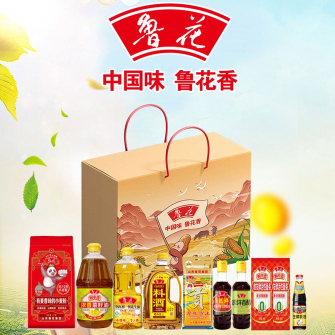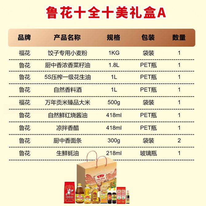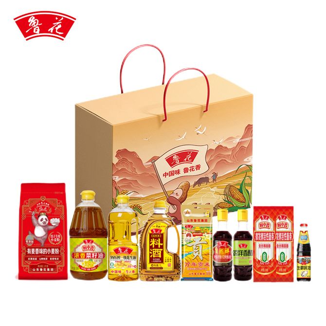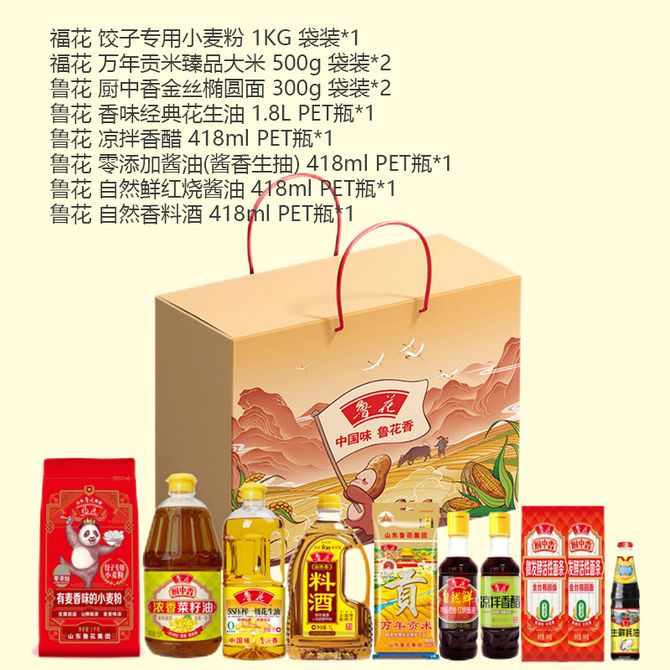 鲁花 十全十美礼盒A 饺子专用小麦粉5S压榨一级花生油自然香料酒万年贡米臻品大米 米面油调味料组合礼盒装 佳节送礼