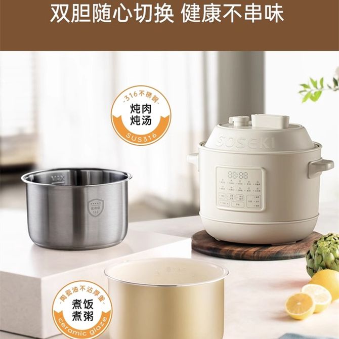 soseki 善思 3L电压力锅一锅双胆智能定时预约高压锅 多功能锅电煮锅烹饪料理煮饭煮粥煲汤炖肉厨房家用电器炖煮锅电炖锅SSK-YLG01白色 3L容量;营养精煮 × 快速泄压-焖煮炖煲全面提速;风冷黑科技;专胆专用;灵敏控压 自动调节食材的专属压力;微压精煮 解锁软糯杂粮饭;10大菜单×3档口感 兑换价格 17200 里程 会员卡别 终身白金卡 白金卡 金卡 银卡 普通卡 儿童卡 商品已下架 1. 请联系卖家咨询 2. 逛逛万象盛世电器专营店选择其他商品 组合销售 产品介绍 产品规格 售后服务 产品咨询 发现好货 苏泊尔(SUPOR)电压力锅 6升大容量 智能触控 球釜双胆 开盖收汁 一键排压 SY-60YC8001Q 高压锅 16900 里程 美的/Midea 电压力锅家用5L大容量多功能高压锅双胆一键收汁智能预约不粘电高压锅电饭锅煮粥煲汤锅 一锅双胆【一键收汁入味】 YL50M1-702 10600 里程 苏泊尔(SUPOR) 5L电压力锅家用电高压锅双胆高压电饭锅煮饭智能预约 SY-50YC8186 11300 里程 美的/Midea 电压力锅 【一锅双胆】5L全自动家用智能预约 上蒸下煮 不粘双胆煲汤炖肉 YL50Q3-451 10900 里程 美的/Midea 电压力锅 高压锅家用电压力煲智能预约电饭煲大容量多功能定时预约电饭煲3-8人单胆旋钮款4L MY-E4809 8700 里程