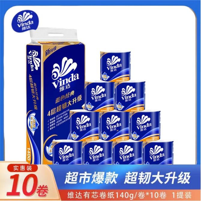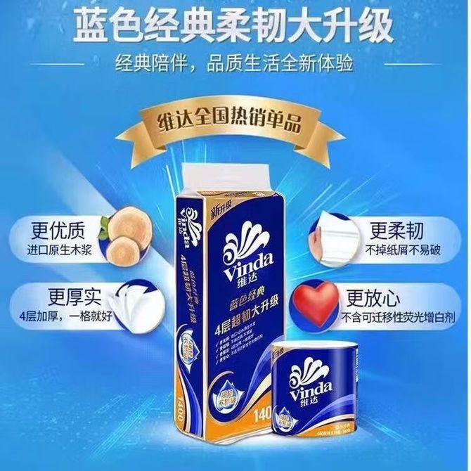 维达 蓝色经典纸巾4层140克厕纸卫生纸卷筒纸家用酒店用 1提10卷/2提20卷 1提10卷/2提20卷,新老包装交替 兑换价格 1100-2000 里程 会员卡别 终身白金卡 白金卡 金卡 银卡 普通卡 儿童卡 服务 由 肃景个护生活 发货并提供售后 包装数量: 1提 2提 购买数量: 件 库存件 配送地址: 立即购买 加入购物车 成功添加到购物车 关闭 购物车共有 种商品 总金额为: 组合销售 产品介绍 产品规格 售后服务 产品咨询 发现好货 维达卷纸 卫生纸实惠装厕纸家用厕所纸巾手纸整箱批有芯大卷家庭装 1200-2300 里程 维达 Vinda 卷纸 140g/卷*10卷 蓝色经典3层卫生纸 1300 里程 心相印抽纸 茶语丝享系列 量贩家庭装 3层*100抽*4包(茶香 压花) 1100 里程 心相印 经典系列 二层面巾纸 180抽*6包*1提 1100 里程 维达Vinda 超韧系列抽纸(3层*130抽*6包) 原生木浆卫生餐巾纸婴儿面巾纸 6包优惠装 1100 里程