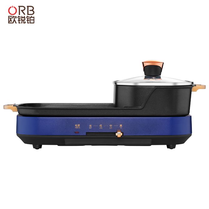 欧锐铂/ORB 1.5L涮烤一体锅电火锅煎烤机煎烤盘料理锅多功能锅烧烤盘烤肉盘电烤盘烤肉锅烧烤炉 家用电器电炖锅电煮锅炖煮锅涮肉锅涮锅电热锅多用途锅电烤炉ORB-461蓝色